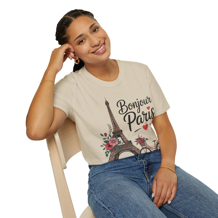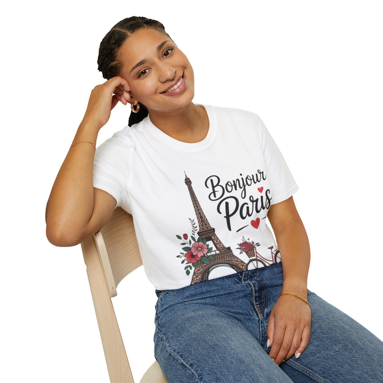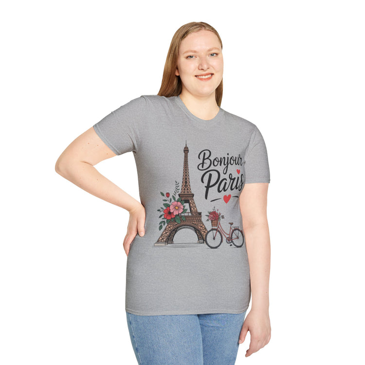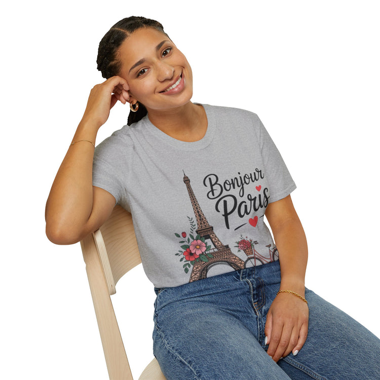 Bonjour Paris Graphic T-Shirt, Cute Travel Tee, Parisian Style Shirt, Gift for Her, Summer Outfit