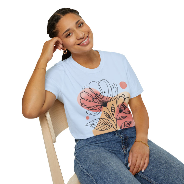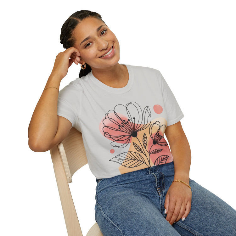 Floral Unisex T-Shirt | Softstyle Tee with Flower Design, Casual Wear, Spring Outfit, Gift for Her, Eco-Friendly Fashion