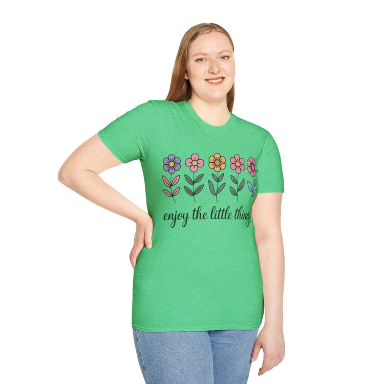 Floral Quote T-Shirt - "Enjoy the Little Things" - Perfect for Spring, Gift for Her, Everyday Wear, Casual Style, Nature Lover
